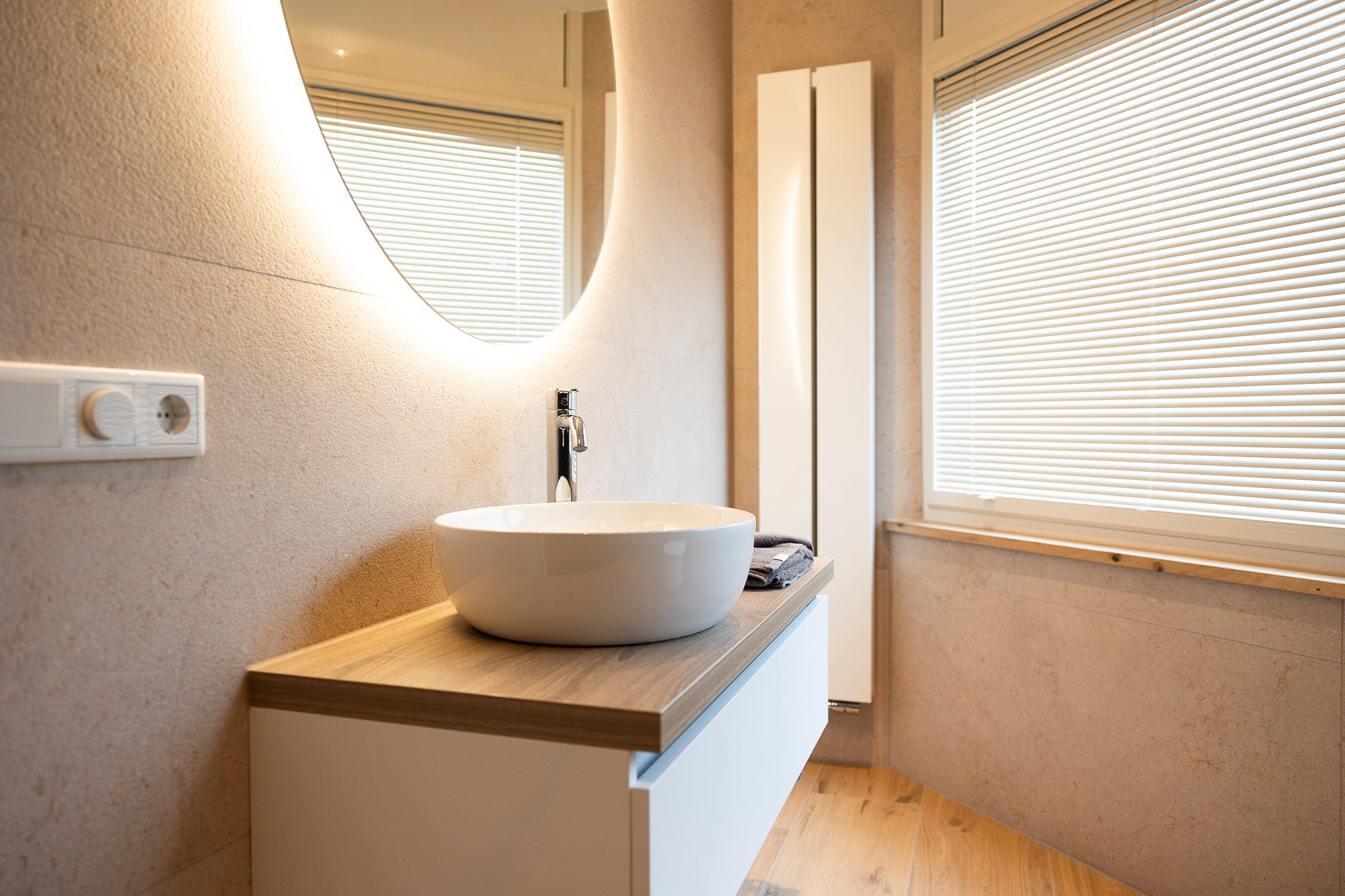 De designradiator zorgt naast de vloerverwarming voor extra warmte in de badkamer. Elk detail is slim gekozen: van de materialen tot de indeling. Zo krijg je een badkamer die niet alleen handig is, maar ook een plek waar je graag bent.