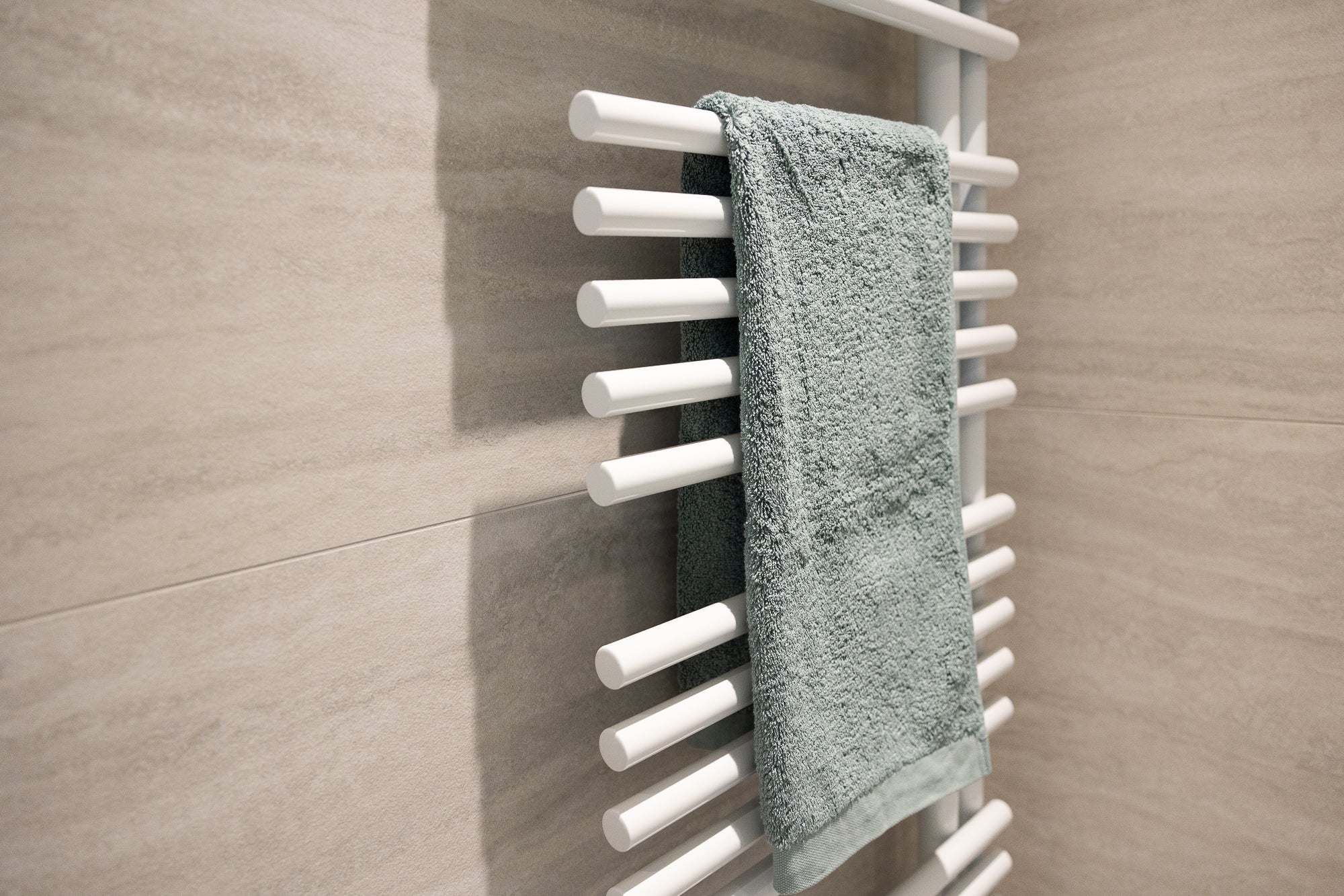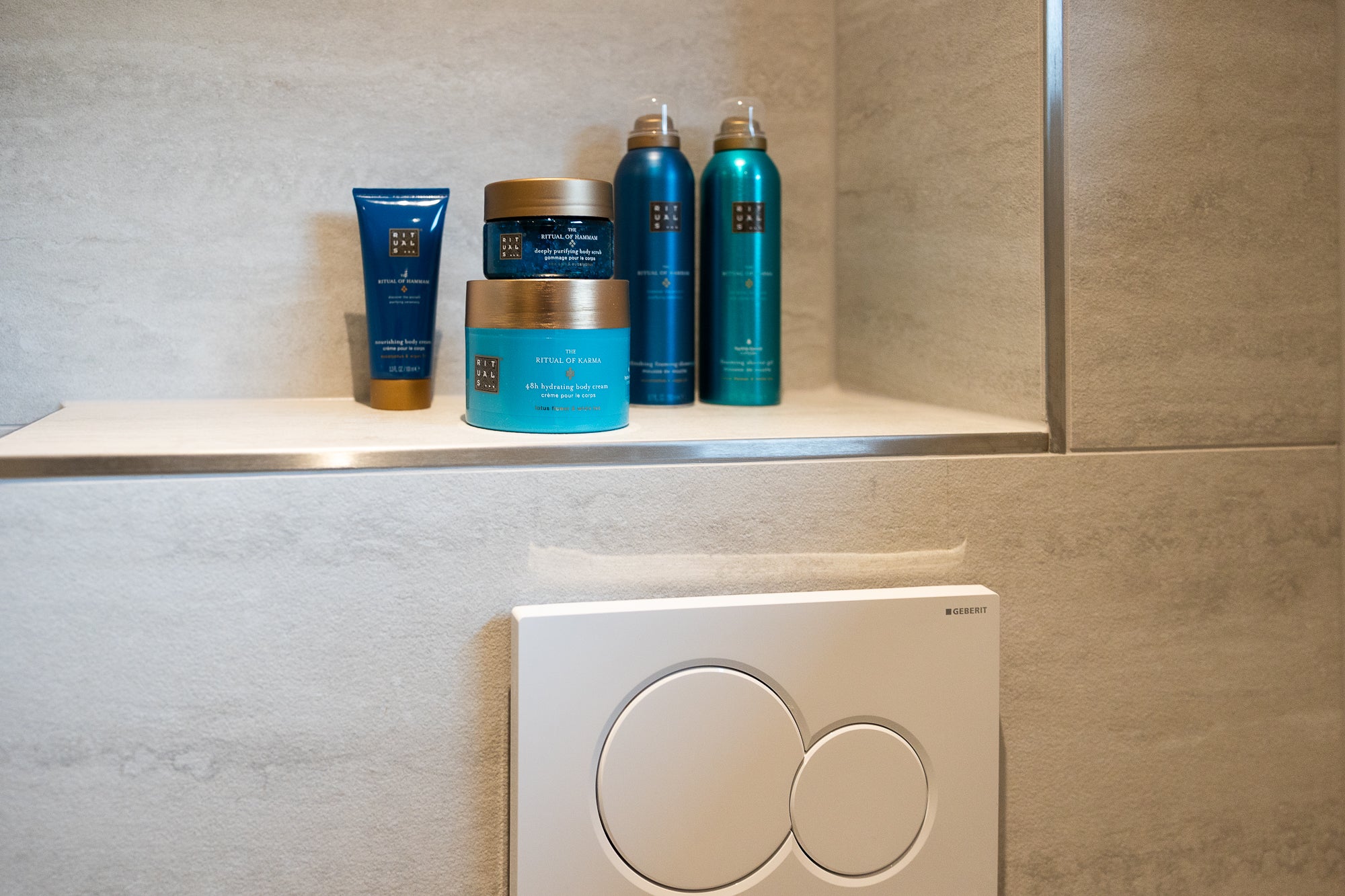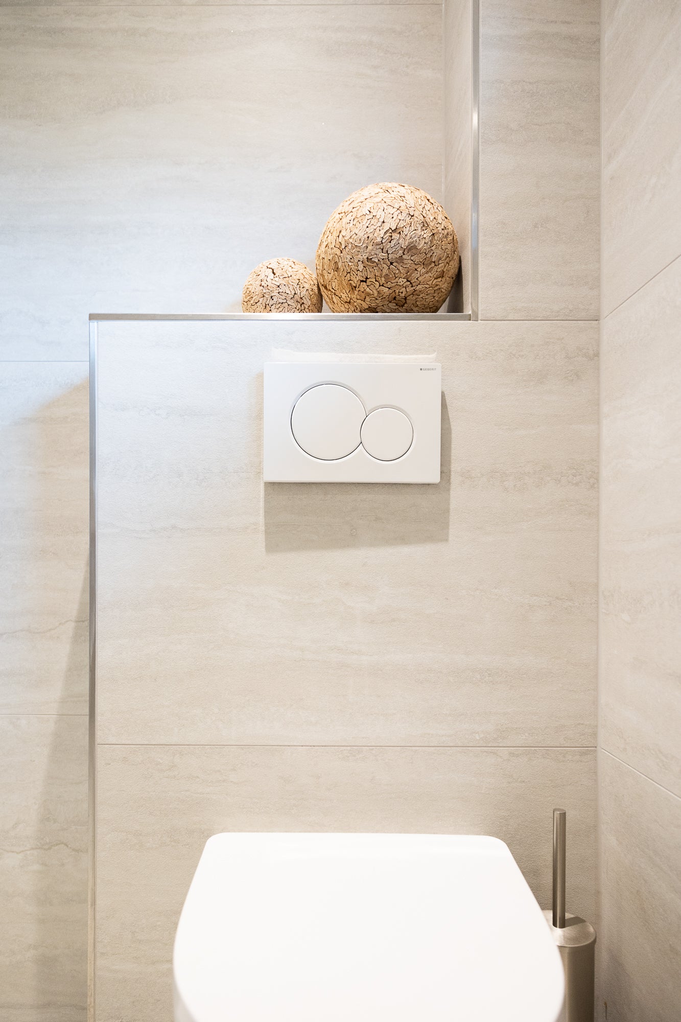 Ook de afwerking is tot in de details verzorgd. Van de stopcontacten tot de bedieningsknop van de vloerverwarming en het strakke tegelwerk. Alles klopt en voelt doordacht.